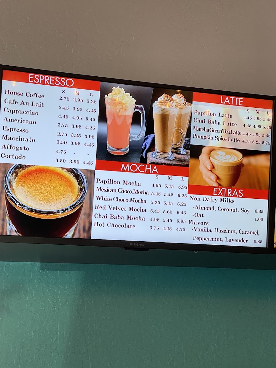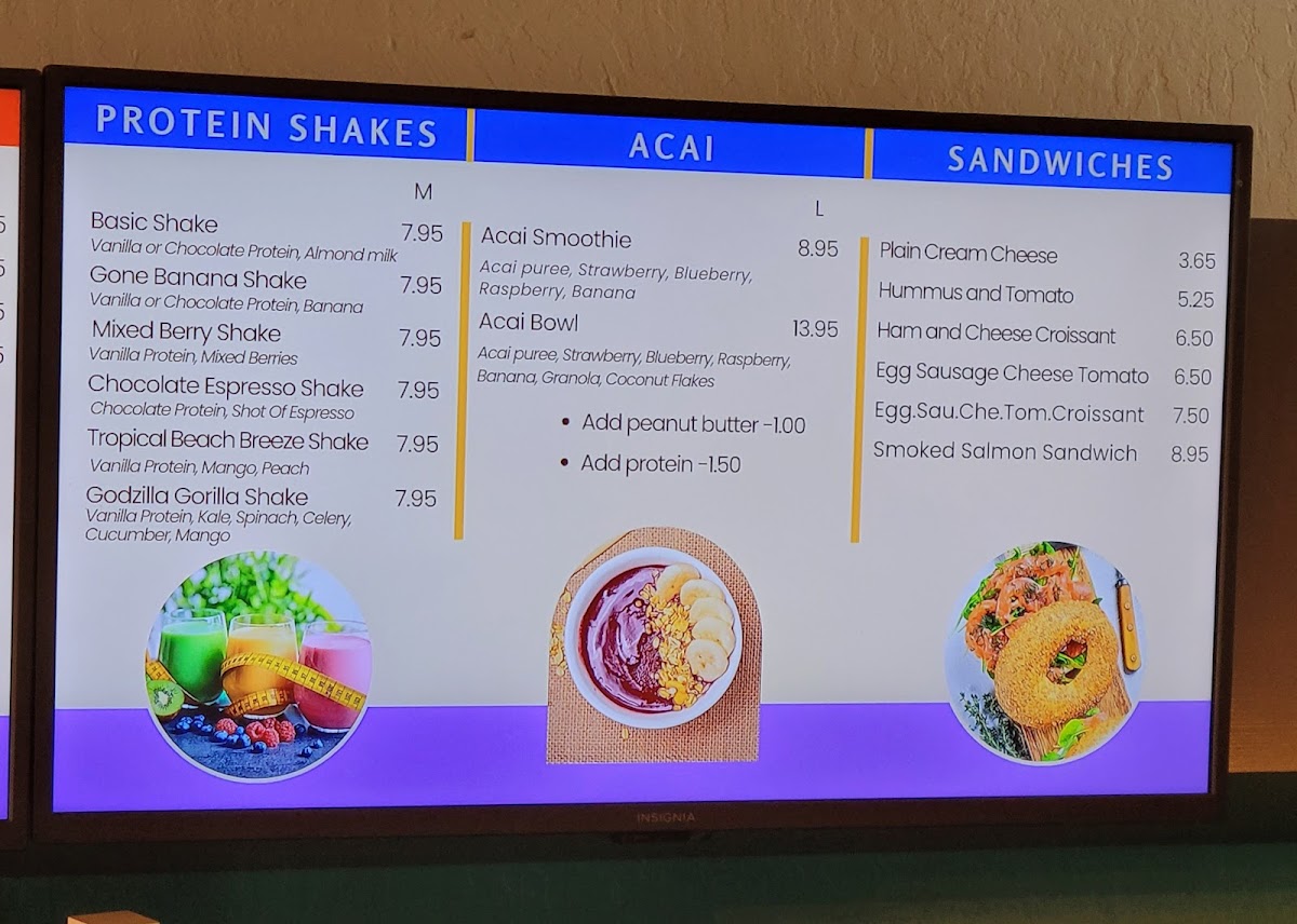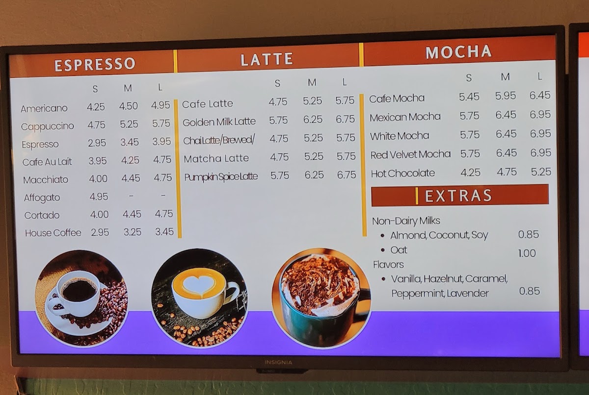 The menu is structured to accommodate quick orders as well as casual dining, supporting a variety of tastes with both sweet and savory options along with an assortment of hot and cold drinks.